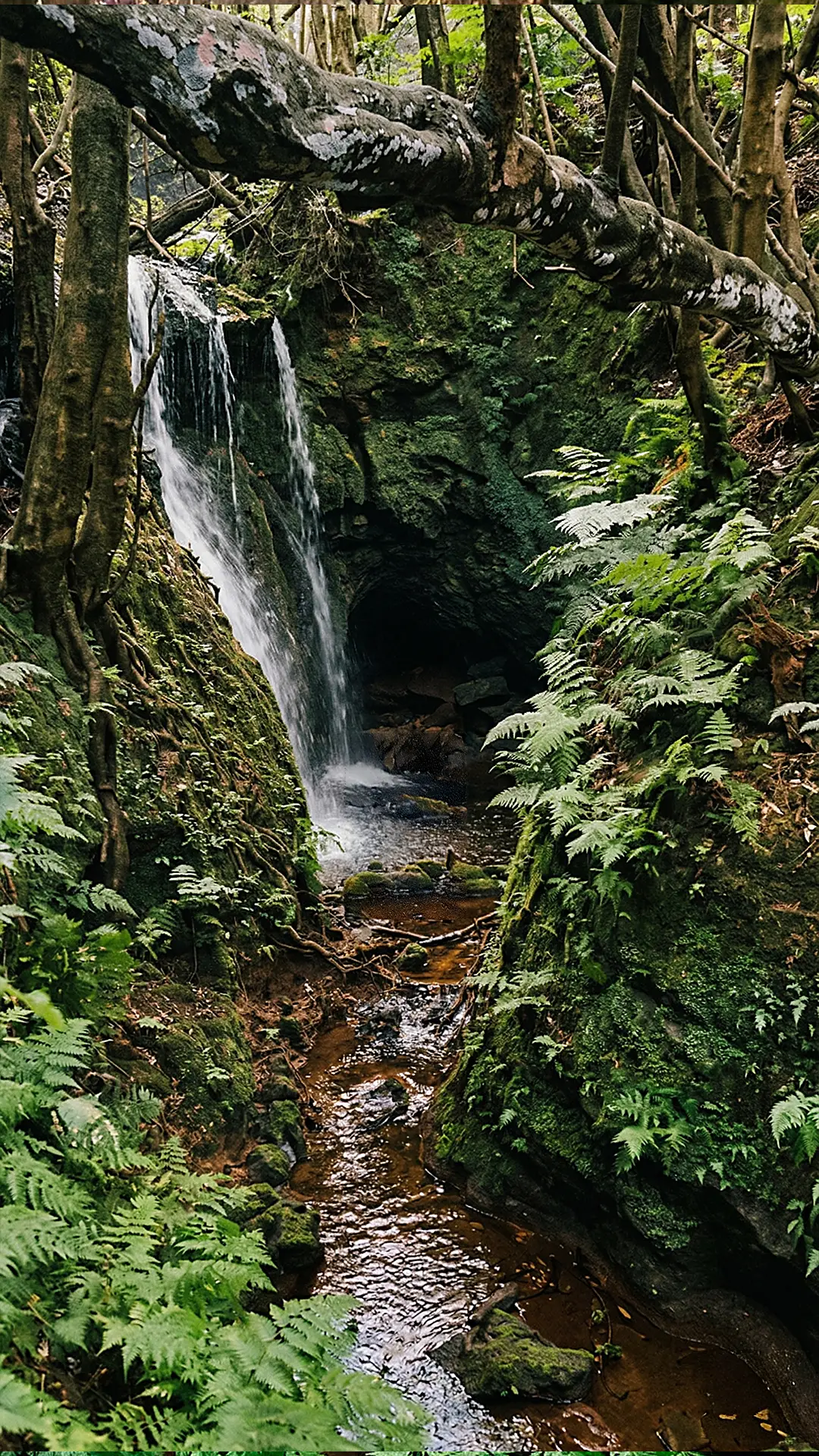 Para quem gosta de explorar: este spot exige uma caminhada mais longa e atravessa uma zona florestal densa, fresca e húmida, onde a luz entra filtrada pelas árvores. A recompensa é uma cascata expressiva e uma ribeira acessível, num ambiente muito verde e imersivo, ideal para sentir a natureza “por dentro”. Com chuva média, o caudal fica mais interessante; com chuva forte, aumenta o risco de piso escorregadio e de margens instáveis. Vai com calçado aderente, mantém-te no trajeto, evita entrar na água e faz a visita com prudência, sobretudo se estiveres sozinho.